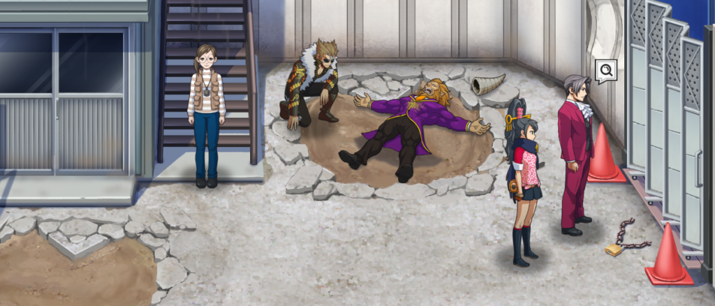 空き地の裏口を2回調べて見覚えのある人たちを見た (逆転検事2・5話)