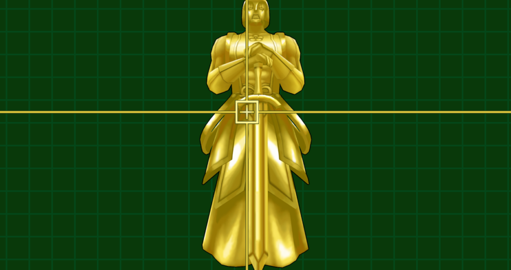 これで像を調べる画面になります。このときに「剣」と「背中の盾」を調べましょう。