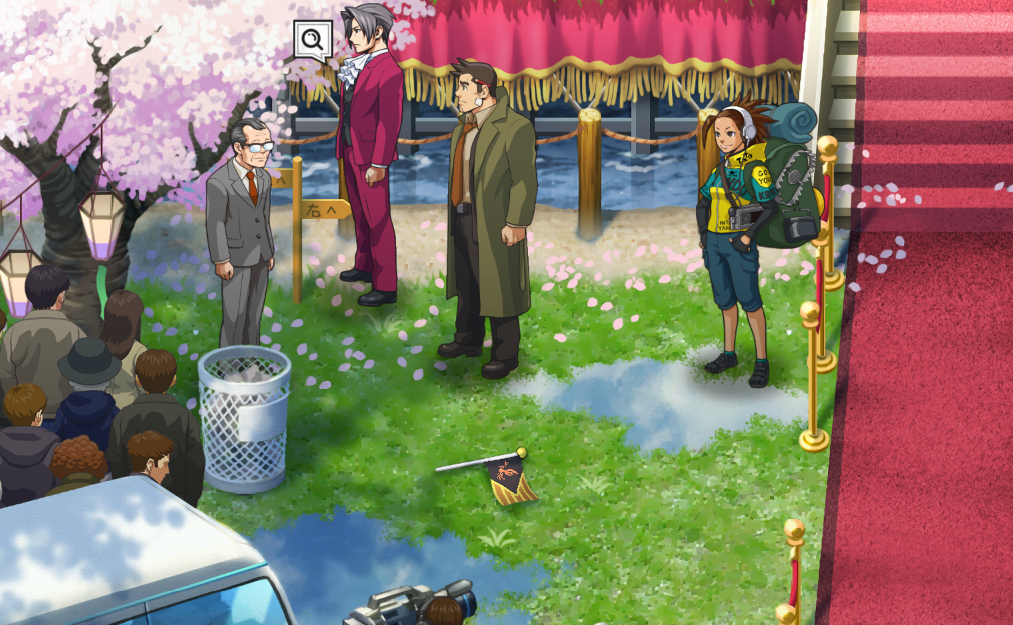 | なるほど、ここだ! | 天野河 光が見つかった直後に正門前の橋まで移動して見覚えのある人たちを見た (逆転検事・3話) |