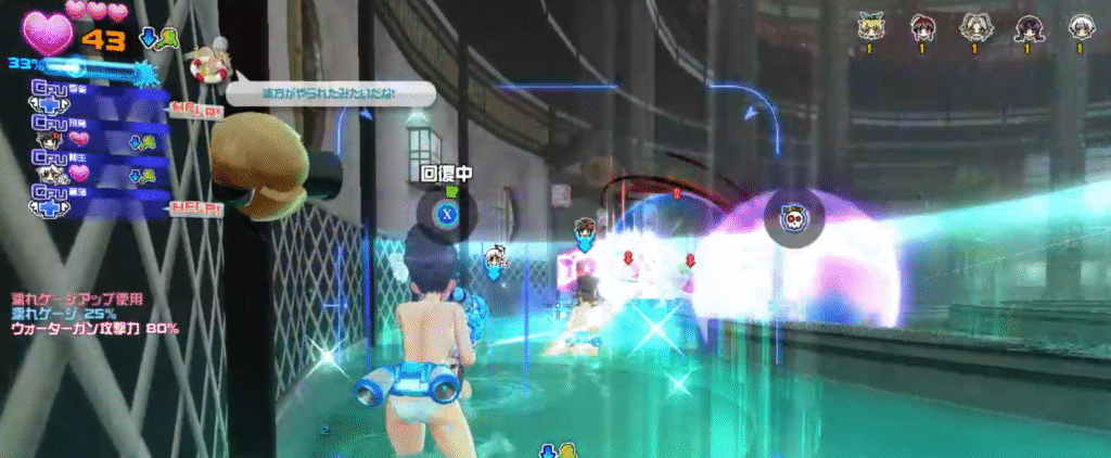 JET-R撃墜後、次の目的地に移動せずにいると味方が射撃してくれるため放置で濡れパワーアップ状態の回数を稼げます。