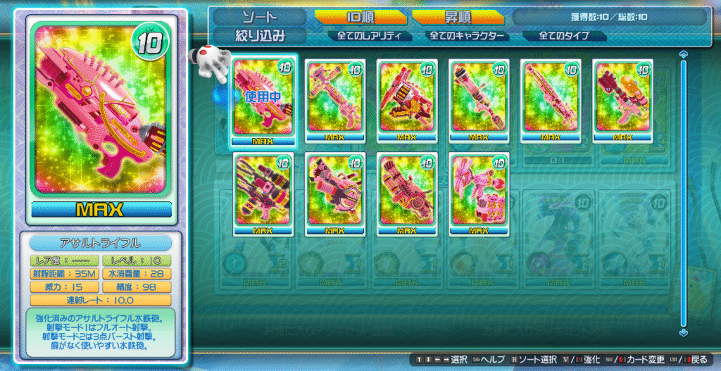 シャワーガンマスターシャワーガンをレベルMAXにした。
