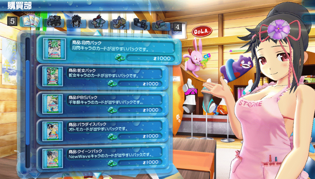 購買部ではカードパックが購入できますが、今はまだ不要です。